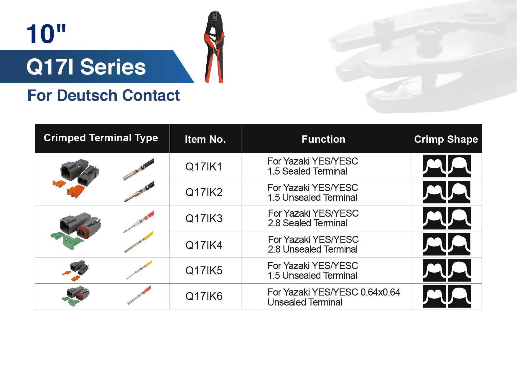 Compatible with a wide range of terminal and connector types, this tool supports insulated and non-insulated terminals, BNC connectors, cord end terminals, solar connectors (such as MC4), open barrel terminals, and sealed waterproof connectors including Weather Pack, Superseal 1.5, and Deutsch series. It also accommodates TE Timer, Yazaki terminals, and Anderson Power Series connectors, making it a highly versatile tool for modern electrical and automotive systems.