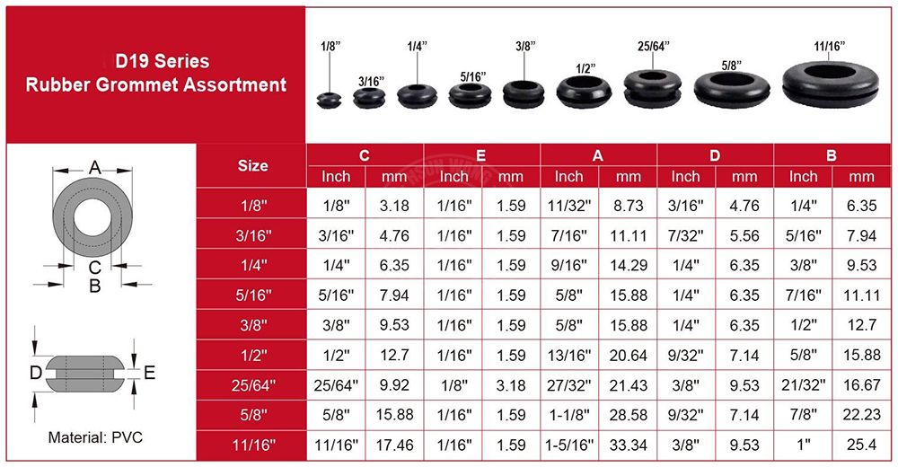 Item No: D19 Rubber Grommet Set